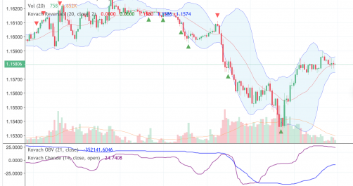 Currently, EURUSD intraday is near the central moving average of the Kovach Reversals Indicator, which sits at about 1.16. It still has some room between current prices and the lower bound of this indicator at 1.15, which will provide support.