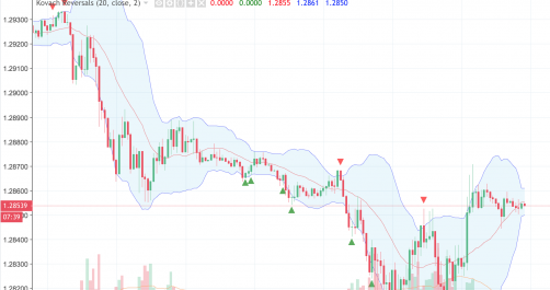 We are above the central moving average of the Kovach Reversals Indicator at 1.29, and fairly close to it.  If we can gain some momentum, the upper bound of the KRI indicator at 1.31 will provide resistance.